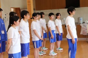 令和7年7月17日(木)・18日(金)の両日にわたり、上小阿仁中学校の全校生徒が英語に親しみ、思いっきり満喫しました。それは、例年開催されている「イングリッシュ・キャンプ」です。本校に在籍している、NETの先生、ALTの先生のほかに、他地域からALTの先生方をお招きしている企画です。会話したり、英語を通して異文化体験をしたりすることで、関心を高めると同時に、英語運用能力を高める機会とすること、また、日本の文化を紹介することで、日本のよさを発信するプレゼンテーション能力の向上も図ることを目的としています。その様子をご覧ください。