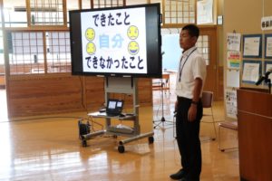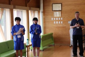まず最初に始まりの会です。お招きしたALTの先生方のユニークな自己紹介が印象的でした。思わず校長先生のお話も…、何と英語で…。英語だらけの2日間が幕を開けました。