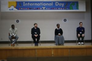 ここからの説明は、毎年「インターナショナルデー」を企画・運営してくれている本校NET(Native English Teacher)のカニンガム・オーエン先生にお願いしたいと思います。