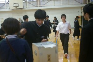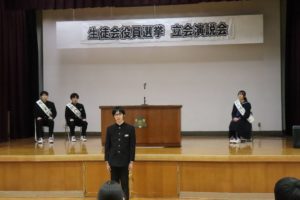 10月に学校祭が終わり、これまで生徒会を引っ張ってきた3年生が大役を終えることになりました。そして、1・2年生にバトンタッチの時期が迫ってきました。それに向けて新生徒会役員選挙に向けての動きが校内で活発になりました。立候補して生徒会を引っ張っていこうとする人、応援にまわって学校を盛り立てようとする人。立場はそれぞれですが、2年生は事前の選挙運動から意気込みを強く表し、先輩の築いてきたものを引き継いでいこうとしています。1年生は一緒に取り組んでいこうと真剣なまなざしで演説会に参加しました。そして、3年生は後輩に託すべく期待を込めて一票を投じました。また、選挙管理委員として放課後の準備から取り組んできてくれました。さあ、上中の新生徒会がいよいよスタートします。