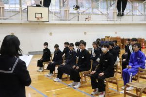 14日(金)には任命式も行われました。新しい生徒会の会長、副会長には校長先生から、保健・体育、放送・図書の各委員長には、新生徒会長からそれぞれ任命書が授与されました。