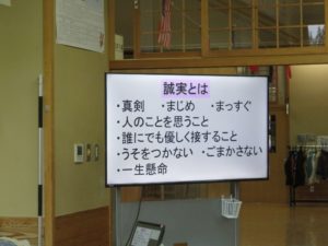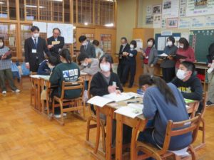 「誠実に生きる」とは、どんなことなのか?授業では「手品師」を教材にし、主として自分自身に関わることの「正直・誠実」についての内容を子どもたちは学びました。授業後、教師の問いかけに対し、子どもたちはどのような見方や考え方ができたか、教科書にある場面を実際に思い浮かべ、登場人物の心情を自分事として捉えることができていたかなど、研究会が行われました。