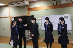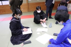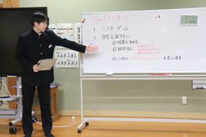 11月28日(金)、生徒会主催のもと「キズナ集会」が開かれました。新しく発足した執行部として計画を進めてきた最初の活動です。この集会では、朝の爽やかな挨拶に始まり、本物体験で経験してきた「シアターゲーム」、テストに向けて取り組んできた「自学ノートの紹介」という2つの内容がありました。特に、自学ノートの紹介では、縦割りの班に分かれ、自分の取組を伝えるだけでなく、よいところを見つけて付箋で教えてあげるというやり取りがあり、和やかな雰囲気ながらも、「勉強にさらに力を入れたい」「学習状況調査や実力テストに向けてさらに頑張りたい」というやる気も高まった時間となりました。最後に、生徒の終わりの言葉で締めくくり、朝の会、1時間目の授業へと進んでいきました。今後もこのような生徒主体の活動がどんどん上小阿仁中学校を活性化していくことを願っています。我々教職員も共に歩んでいきます。