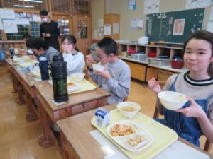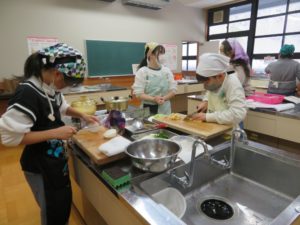 先週、期末PTA・授業参観を終えて冬休みまであと少しとなりました。外は雪や雨が降って慌ただしい天気が続いていますが、上小阿仁小中学校の児童生徒たちは学校生活を充実させて過ごしています。冬休み前、その取組の様子を伝えていきます。今回は、小学校では5年生の家庭科調理実習、中学校ではアンサンブルコンテストの激励会の様子をお届けします。