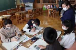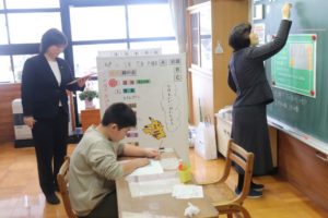 ・小学校3年生では、机を2台使用していた。少ない人数だからこそのことだと思うが、恵まれた環境の一つだと感じた。算数では、電卓を巧みに活用して計算していた。このように使っているのかと興味をもって参観することができた。