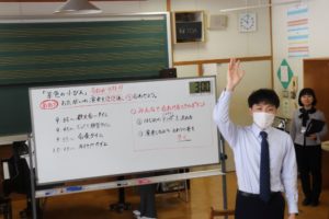 ・前回に比べて全体的に落ち着いている雰囲気だった。低学年のときから言葉を大事にしている感じで、自分で考えて発表する、それを周りはしっかりと聞いている。このおかげで自分の意見に自信をもって言える。この積み重ねがあるので、中学生になっても臆することなく意見を述べられることにつながっていると思う。また、それに対して返すこともできている。